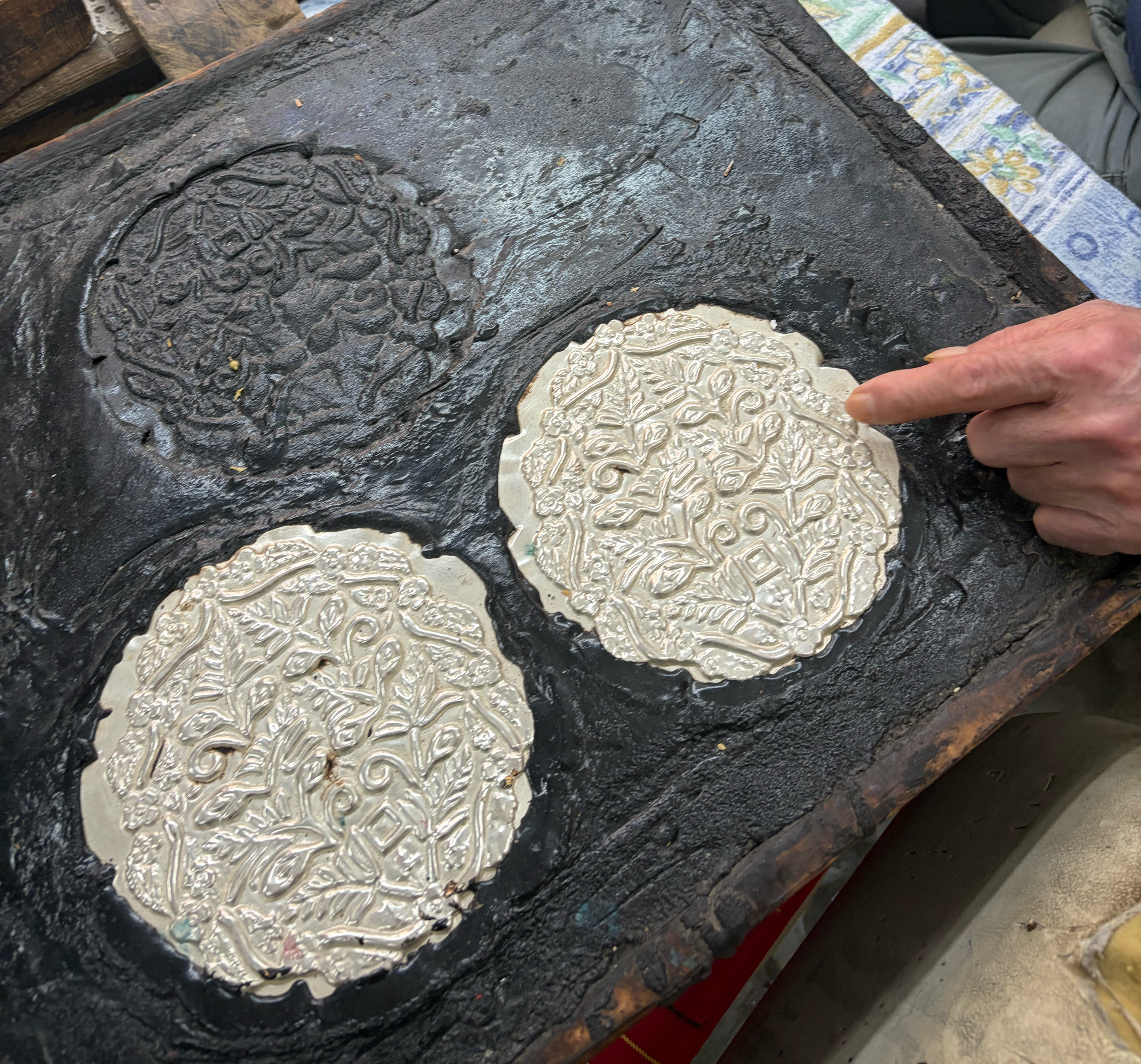 A defining feature of his craft is that every piece is entirely handmade. He works with silver sheets that are pressed, shaped, and intricately carved by hand to form each object. The process involves the use of heat and precise manual skill. His son also takes part in production, carving the pieces according to specific measurements and designs.